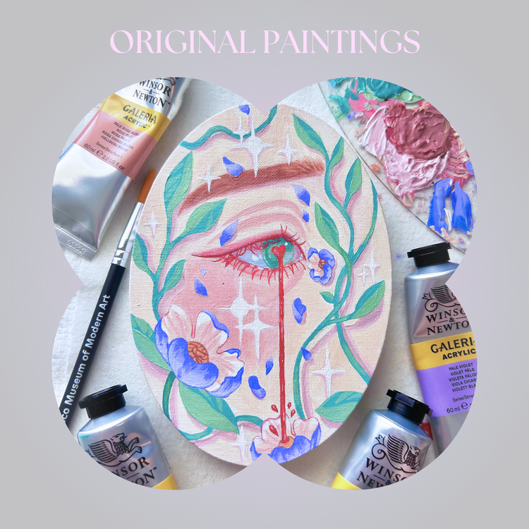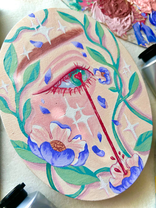 "Fragile" Oval Acrylic Painting on Canvas - 5x7in