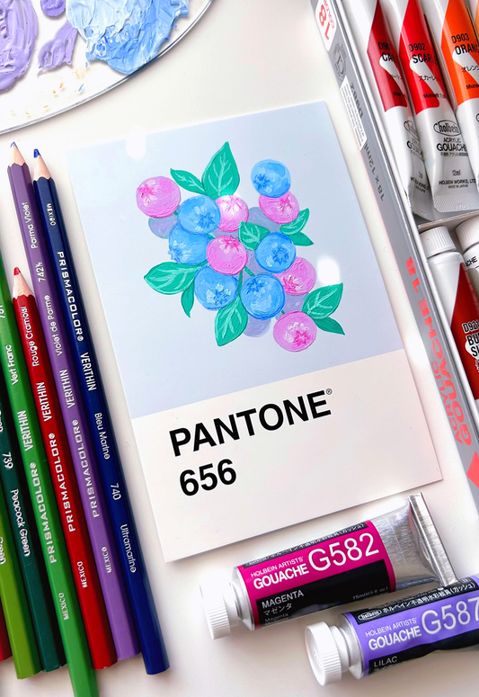 “Spring Blueberries” Pantone Postcard Gouache Painting - 4x6in