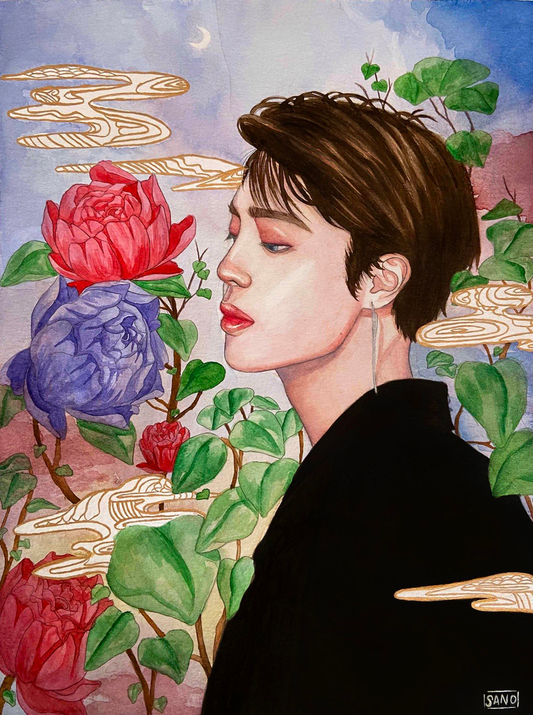 [BTS] "Promise - Park Jimin" Watercolor & Gold Ink Painting - 9x12in