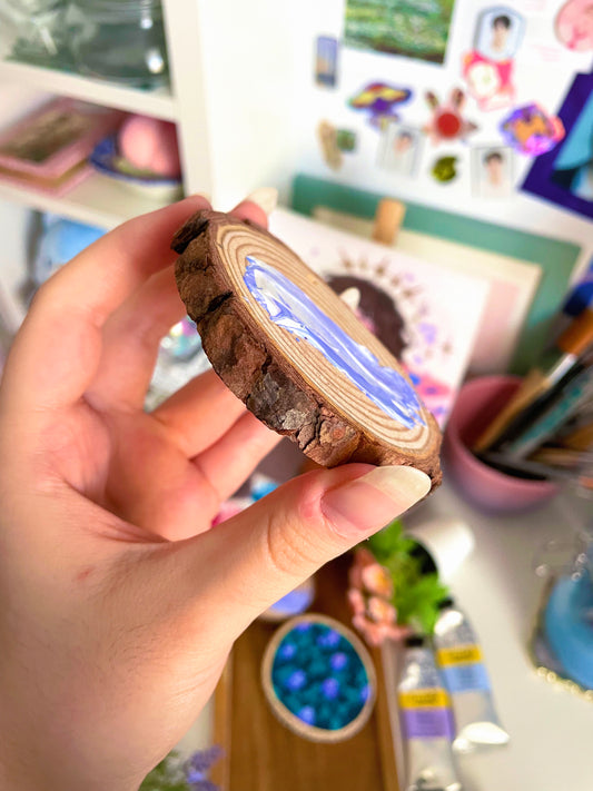 "Ocean Wave" Wood Slice #2 Acrylic Painting - 2.4x3.15in