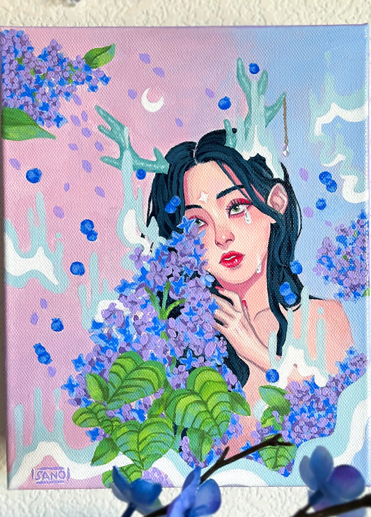 "Lilacs & Blueberries" Acrylic Painting on Canvas - 8x12in